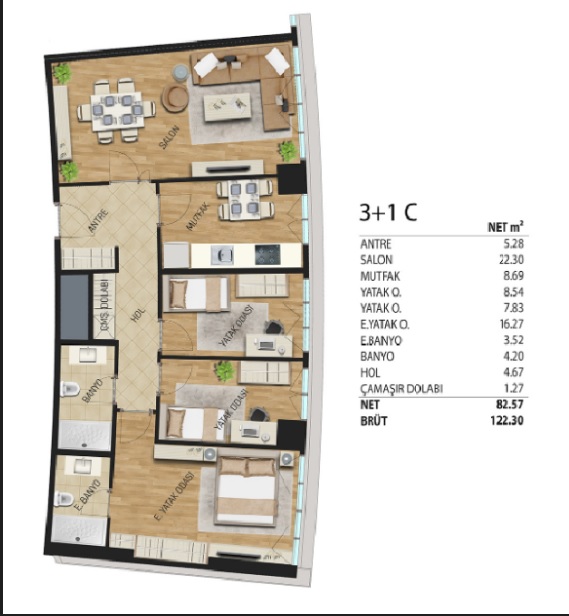 Projedeki daire tipleri: 1+1,2+1,3+1